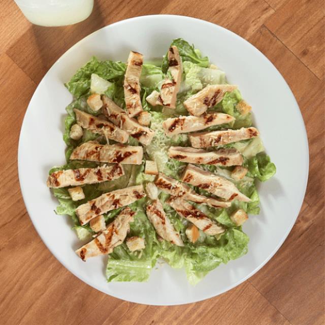 La tradicional ensalada con lechuga orejona, nuestro aderezo César especial, parmesano y crutones. Con 220 g de pollo.